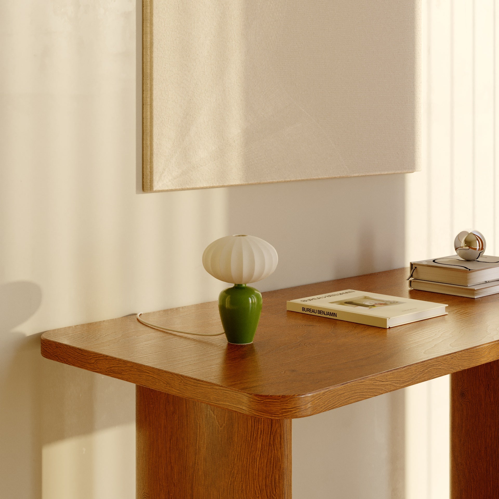La Mini Meringue est une lampe de bureau habitée par la même grâce que sa grande sœur, mais dans une expression plus intime, presque confidentielle.